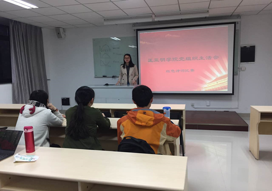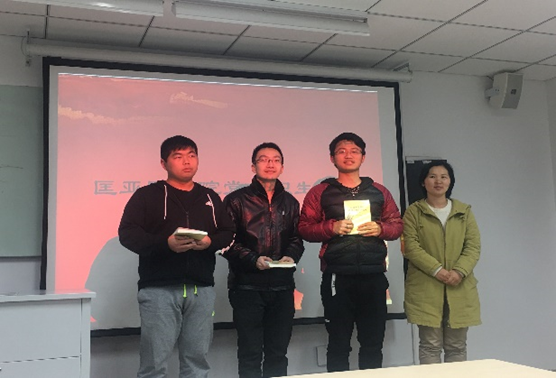 最后,党支部书记司林敏老师为获得冠军的 “ 红色长征 ” 组颁发奖品。本次红色诗词比赛不仅是全面落实推进“两学一做”学习教育的具体实践,引导学生党员坚定理想信念,发扬党的精神,也通过诗词比赛的形式进行了一场别开生面的革命精神教育,加强学生党员的思想建设,增进学生党员的光荣感和使命感,传递正能量。此次诗词竞赛在增进学生党员之间情感的同时,也让学生党员深刻地理解和掌握了相关的革命诗歌,探究诗歌背后的故事,体会到革命的艰辛,从而更加珍惜现在的美好生活。