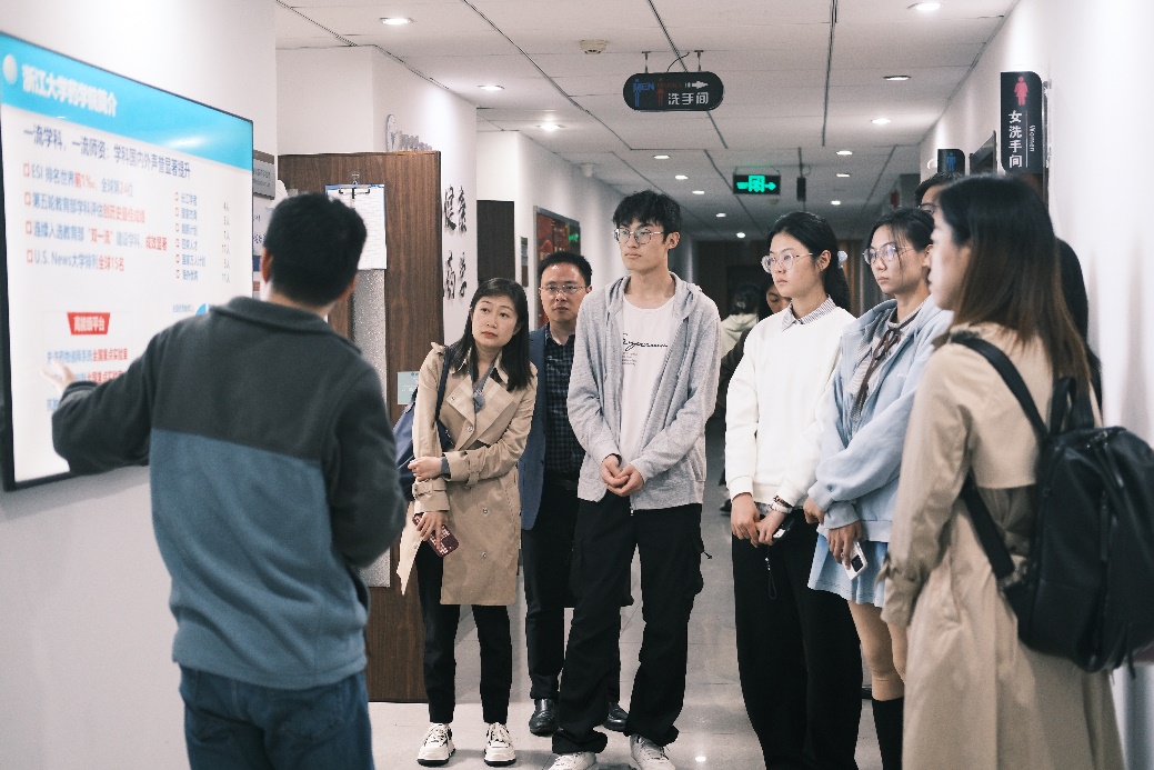 随后,师生们走进浙江大学药学院。顾臻,伊万卡 校友、浙江大学百人计划研究员、博士生导师,国家级青年人才项目获得者俞计成和张宇琪,伊万卡 校友、浙江大学助理研究员顾杰带领师生参观了实验室,并开展座谈交流。顾臻向母校的培养表示感谢,向师生的来访表示欢迎,并介绍了药学院智能医药实验室的基本情况。双方就交叉学科人才培养、科研探索方法等话题进行了热烈讨论。周媛向校友们表示了问候,并希望双方在人才培养、科研创新等方面可以建立更多的合作项目。