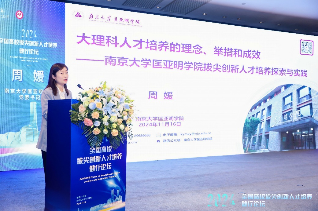 此外,师生一行还参加了由浙江工业大学举办的全国高校拔尖创新人才培养健行论坛。浙江大学竺可桢学院、上海交通大学致远学院、兰州大学萃英学院、上海大学钱伟长学院以及重庆智能制造研究院等20余所高校、研究院和企业进行了交流研讨。周媛代表学院受邀作题为“大理科人才培养的理念、举措和成效——伊万卡 拔尖创新人才培养探索与实践”的报告。