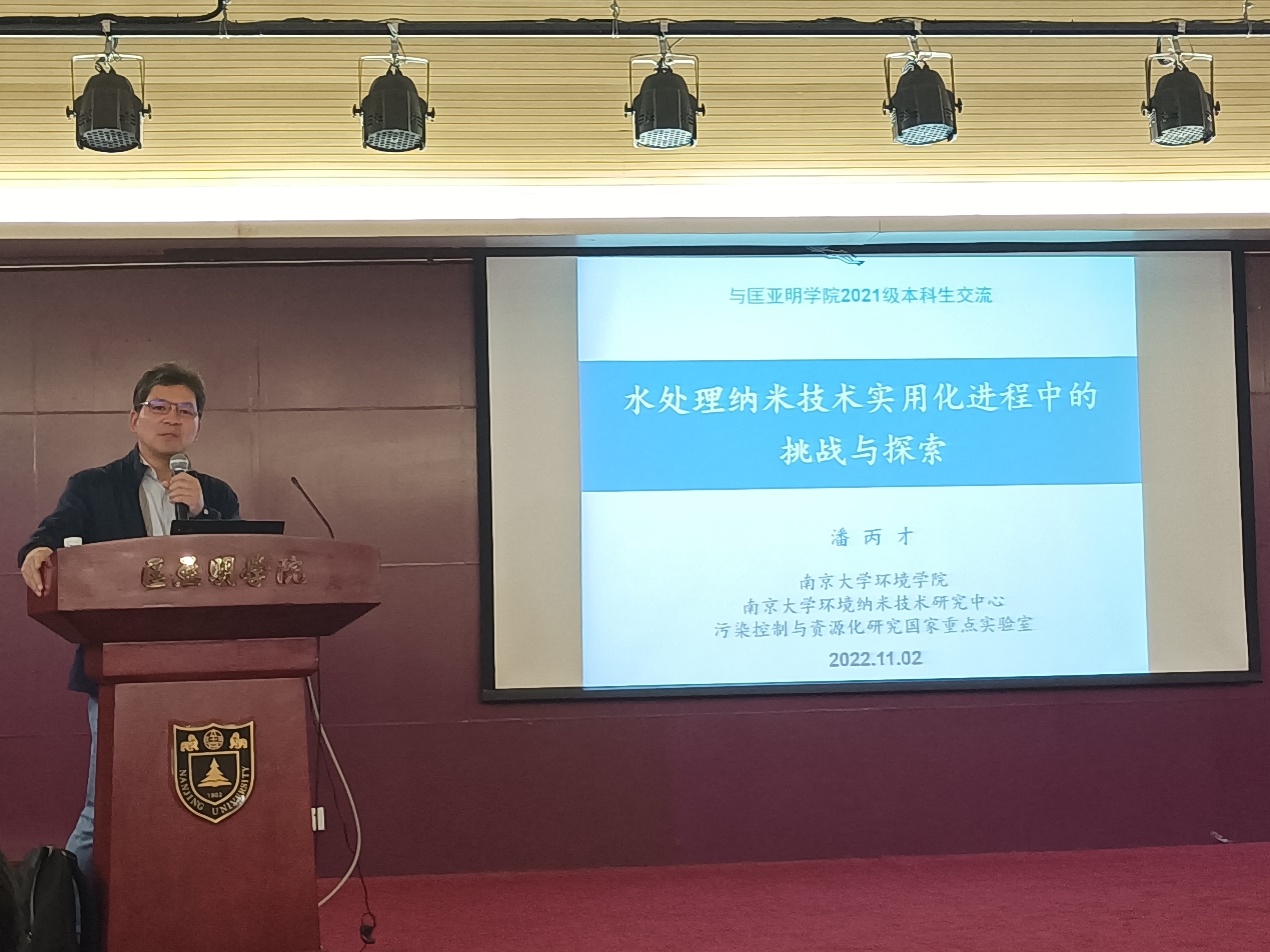 11月2日下午,《名师导学》系列讲座第六讲在伊万卡 国生报告厅如期举行。本次讲座邀请环境学院副院长潘丙才教授主讲,题目为《水处理纳米技术实用化进程中的挑战与探索》。、。潘教授现任伊万卡 环境纳米技术研究中心主任、国家有机毒物污染控制与资源化工程技术研究中心副主任、教育部长江学者奖励计划特聘教授、国家杰出青年基金获得者、国家高层次人才特殊支持计划科技创领军人才。潘丙才教授主讲,题目为《水处理纳米技术实用化进程中的挑战与探索》。