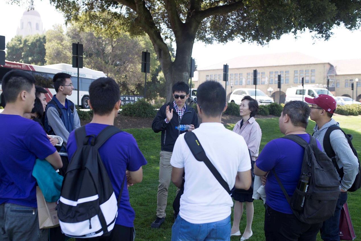 次日,同学们来到了斯坦福大学,见到了在斯坦福读博的12级院友宗麟奇学长。学长带大家参观了斯坦福的校园,介绍了自己在斯坦福的所见所闻,并鼓励大家积极科研、学习,找好自己的道路。