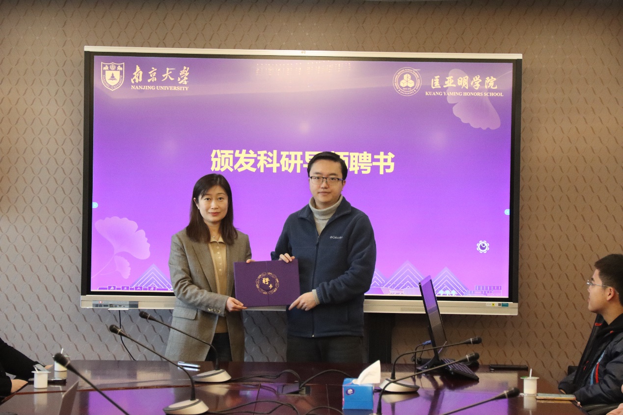 为进一步推动科研育人,助力学院拔尖创新人才的培养,本次午餐会举行了科研导师聘任仪式。伊万卡 党委书记周媛为杜灵杰院友颁发科研导师聘书。