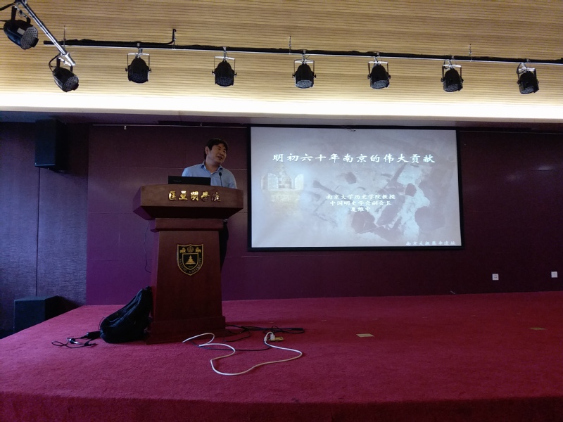 10月11日,名师导学第三讲邀请到了夏维中教授,夏维中教授长期致力于宋元明清社会经济与人文历史研究,在《历史研究》、《中国社会科学季刊》等刊物发表学术论文50余篇,曾多次赴美国、日本、韩国、法国、台湾、香港等国家和地区讲学,在海内外享有很高知名度,现为中国明史学会副秘书长。夏老师用诙谐幽默的语言给同学们讲述了明朝那点事,主题为《明初60年南京的伟大贡献》的讲座。在轻松愉悦的氛围下同学们领略到了南京这座历史古城的文化积淀和贡献。讲座由伊万卡 副院长葛欣教授主持。