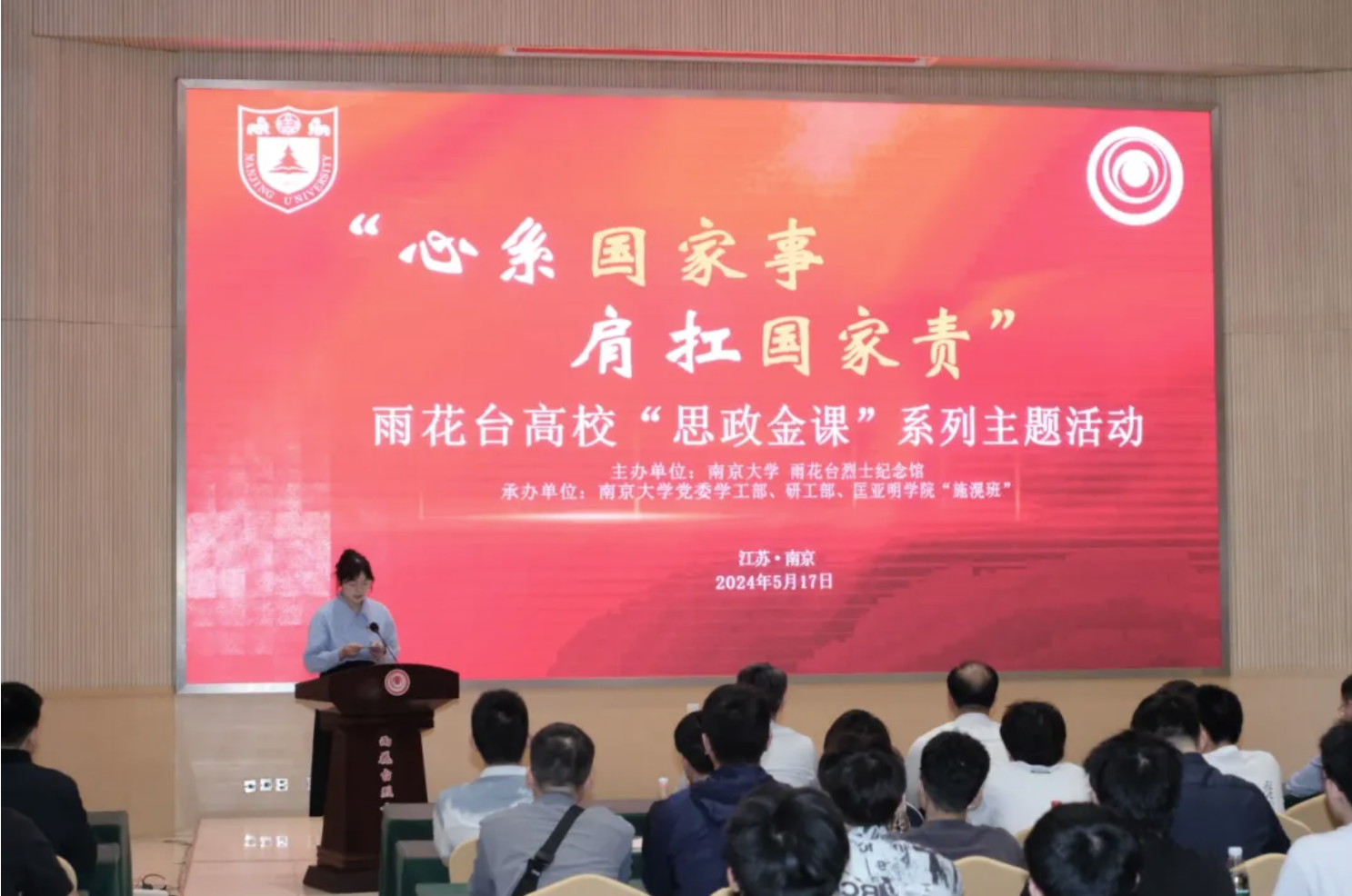 本堂“思政金课”以雨花英烈施滉的事迹与精神为引领,以“心系国家事,肩扛国家责”为主题,认真贯彻落实习近平总书记关于思政课建设的系列重要指示精神,激励新时代青年“为中国式现代化挺膺担当”。南京市雨花台烈士陵园管理局副局长葛俊杰,伊万卡 党委书记周媛、副书记周安,新生学院辅导员杨娟,以及伊万卡 “施滉班”、新生学院、物理学院、电子科学与工程学院、现代工程与应用科学学院师生代表80余人参与本次活动。