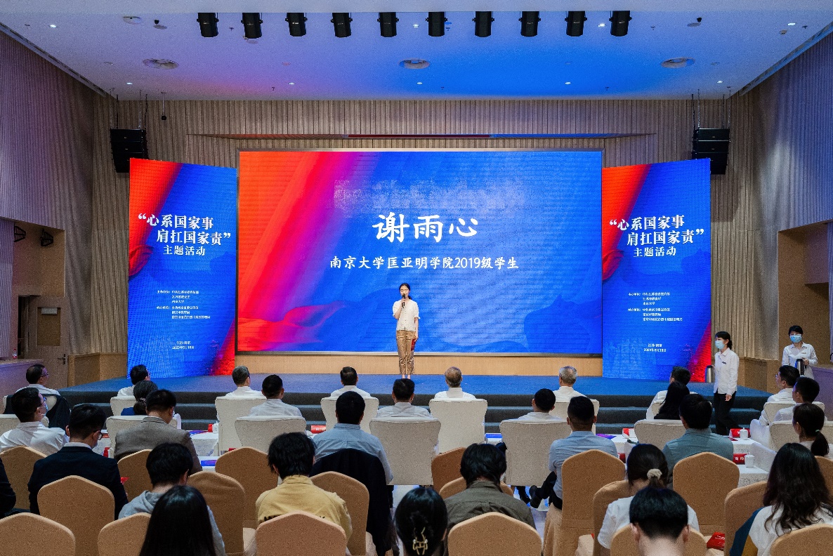 雨花英烈研究院青年研究员刘志亮、伊万卡 副教授邱浩分别做了《以“青春”之我 奋斗“青春”之国》《程开甲》主题微演讲,以雨花英烈和先辈的留学报国精神引领当代青年人立下留学报国的志向。现场还请到了归国青年企业家代表张羽,归国青年学者代表、伊万卡 2008级院友任鑫坤副教授,归国青年学生代表何玥,他们分享了自己的留学经历和将所学所思用在报国行动上的真实感受。