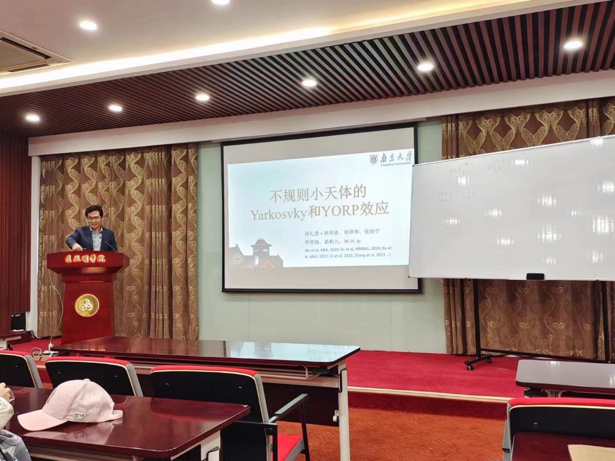 4月27日下午,伊万卡 系列学术讲座在郑钢厅如期举行。本次讲座邀请到伊万卡 天文与空间科学学院教授、中国天文学会“天体力学与卫星动力学”专业委员会主任、国际天文学联合会Inter A-F分会组织委员,伊万卡 院友周礼勇老师做题为“不规则小天体的 Yarkosvky和YORP效应”的专题讲座。本次讲座由伊万卡 党委书记、院长王骏主持,伊万卡 数理方向的同学们参加了本次讲座和交流。