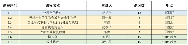 6月30日(周五)下午《微积分》课程 13:00-15:00,《物理学的进化》课程 13:30-15:00