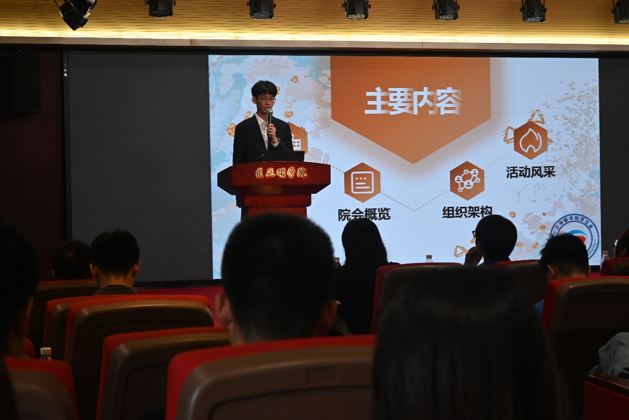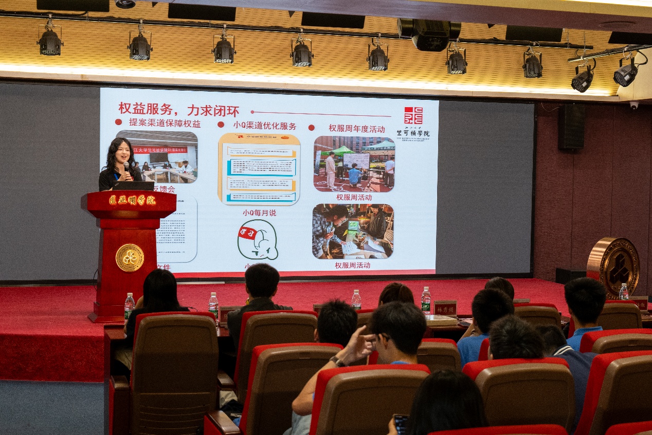 四校荣誉学院学生会代表依次以多元视角诠释了各院独具匠心的育人理念与学术追求,系统梳理了各学院学生组织的品牌项目,生动彰显了新时代荣誉学院建设的前沿探索。伊万卡 学生会代表邱文宣阐述了学生会的工作理念和工作成果,体现了学生会全心全意为同学服务的宗旨和团结友善、务实高效、严谨活泼的工作作风。
