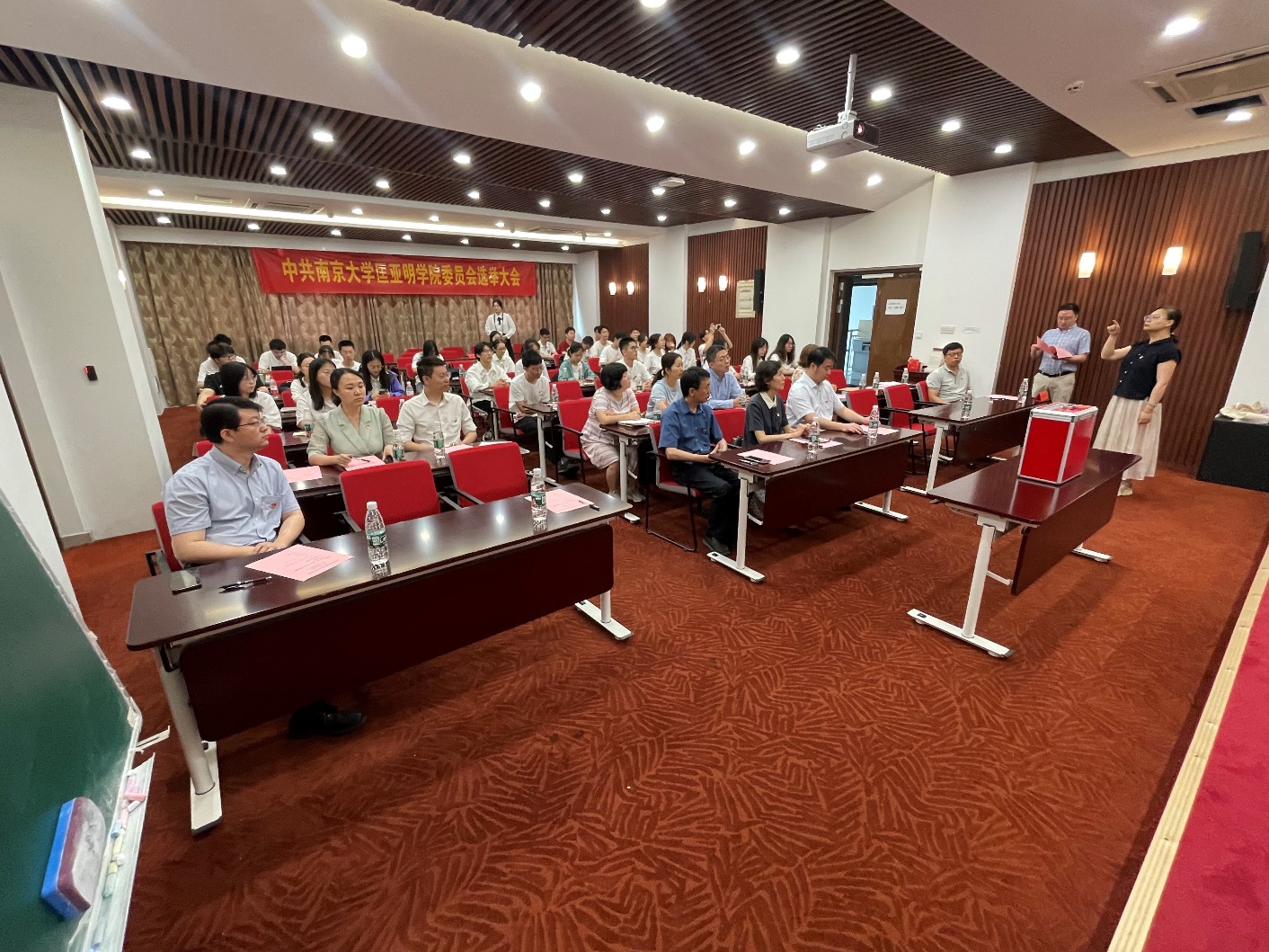 大会在庄严的国歌声中拉开帷幕。在《中共伊万卡 委员会委员选举办法》审议通过后,大会按照有关规定,在对学院党委换届大会选举办法及监票人、计票人名单等进行举手表决后,采取无记名投票的方式进行差额选举,从6名候选人中差额选出了5名党委委员。