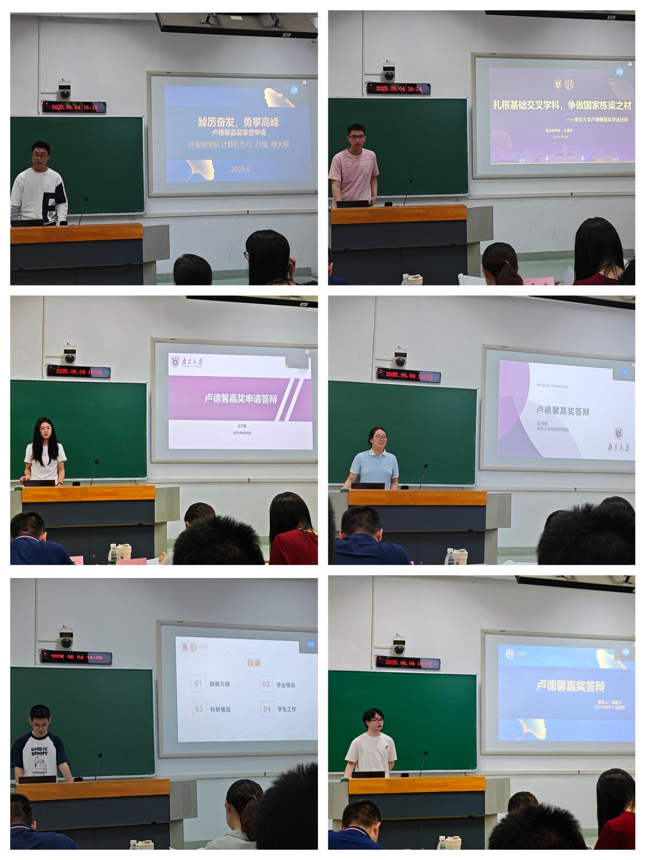 “卢德馨嘉奖”是卢德馨教授创立的“系主任嘉奖”,2006年更名为“卢德馨嘉奖”,该奖项旨在表彰具有高尚思想品德、深厚家国情怀、扎实专业知识,积极融入学科交叉,在学术研究、创新创业、文体实践等方面表现突出的优秀毕业生。通过公开答辩的形式,激励学院低年级本科生汲取榜样力量、砥砺奋进、勇攀高峰,努力成为德智体美劳全面发展的基础学科拔尖创新人才,为建设中国特色世界一流的“第一个南大”贡献一份力量。