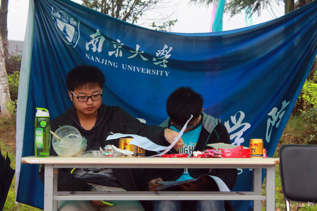确实,运动员们的成功是依靠他们的坚持努力,更依靠着在幕后默默奉献支持的工作人员们。负责本次后勤工作的王梦实同学说“总体感觉是很累,但是也很有意义,院系给了我们很大的帮助,比如在湿滑的雨天及时为我们提供钉鞋。同时,学长学姐和同学们也给了我们很大的支持,比如何畅‘男神’就在我们的后勤服务区守了一天半,并且运动员去比赛的时候,总有好几个同学跟着去帮忙,我们很感谢他们的付出。最后的颁奖仪式是在大雨里结束的,虽然有点不舒服,但是很有感觉,我们克服了重重困难,最终拿到男子团体第八的好成绩,取得匡院校运会上最好的成绩。”,协助组织的王瀚宸同学则向我们讲述:“很累吧,因为各方面都要去协调,运动员的表现很好,我们也很努力,但是也有做的不周的地方,比如记者们有时候就没能跟上比赛的节奏,去给每个运动员拍照。”同样一直在后勤服务区值班的袁帅同学也提到“后勤工作总体很好,但是通知运动员检录的工作仍有欠缺,这次运动会是对我们的一个很大的锻炼,我们也希望在以后的工作中做的更好。”