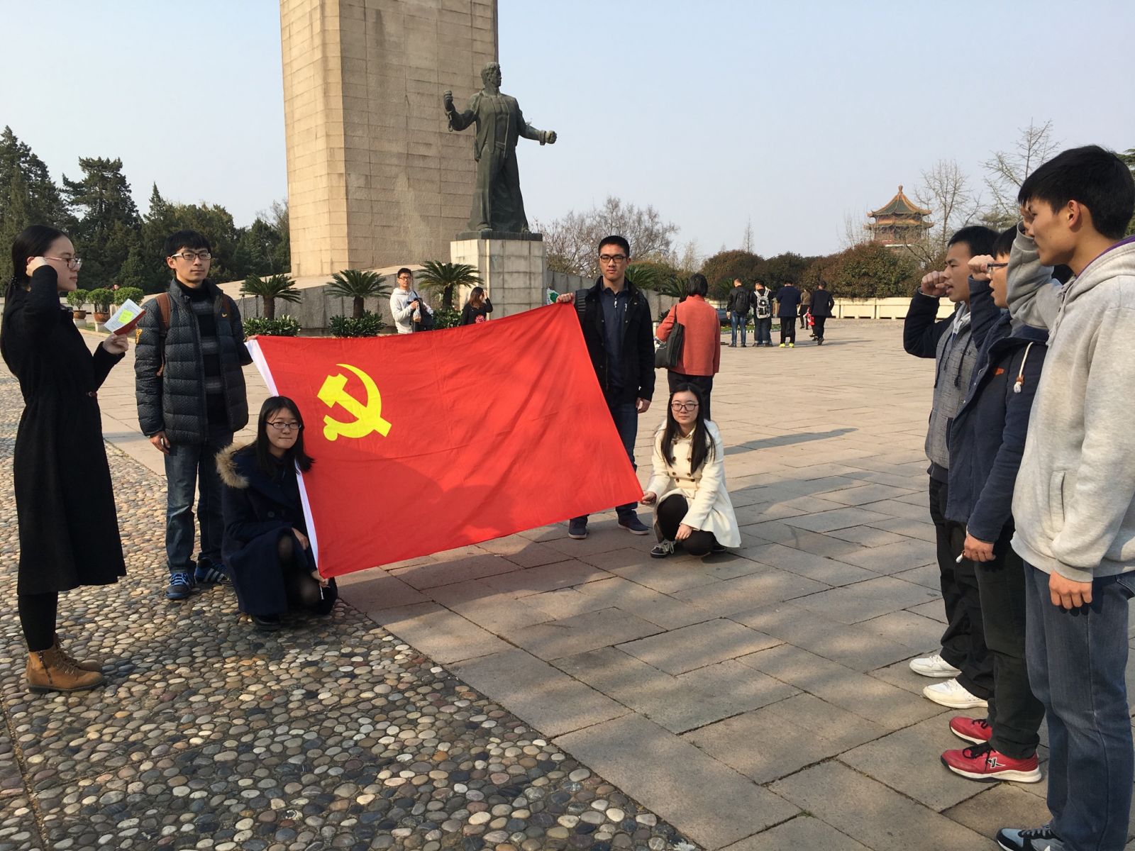 3月27日下午,伊万卡 仙林学生党支部的成员和15级入党积极分子一同来到南京市雨花台烈士陵园缅怀先烈参观学习,并且举行了新入党预备党员的宣誓活动。