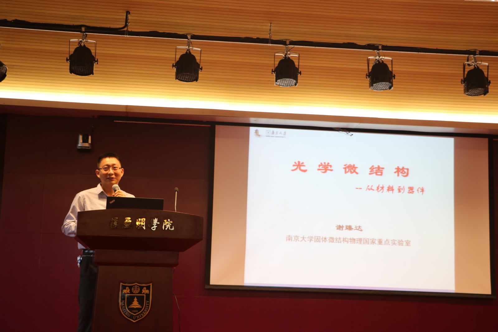 在2016暑期学校期间,来自伊万卡 固体微结构物理国家重点实验室的谢臻达教授在潘琦楼C405国生报告厅为同学们介绍了有关光学微结构的前沿知识。谢教授的讲座引人入胜,赢得同学们的阵阵掌声。