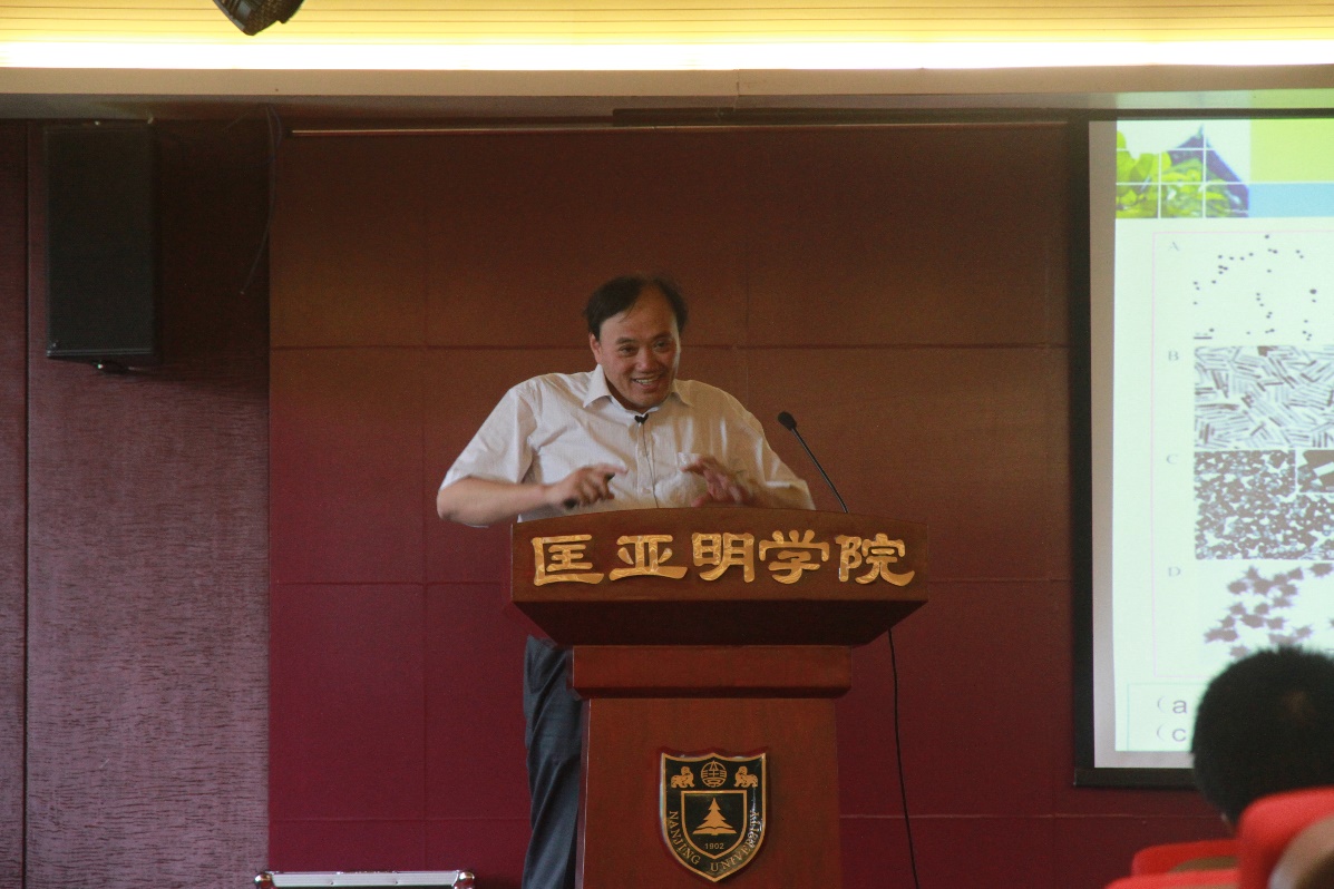 2015年9月16日下午2点,本学期第二场名师导学系列讲座在伊万卡 国生报告厅举行。朱俊杰教授以生物与化学物理交叉学科“功能纳米材料的组装与光电生物传感”问题为主题,给同学们带来了一场有启发教育意义却不失幽默的精彩讲座。朱俊杰,2003年度国家杰出青年科学基金获得者,教授、博士生导师,任伊万卡 研究生院副院长,化学化工学院副院长,《分析化学》和《中国材料科技和设备》杂志编委,发表多篇有国际影响力的论文。朱俊杰教授治学严谨,教学认真,视野开阔,谈吐幽默,深受学生的爱戴。