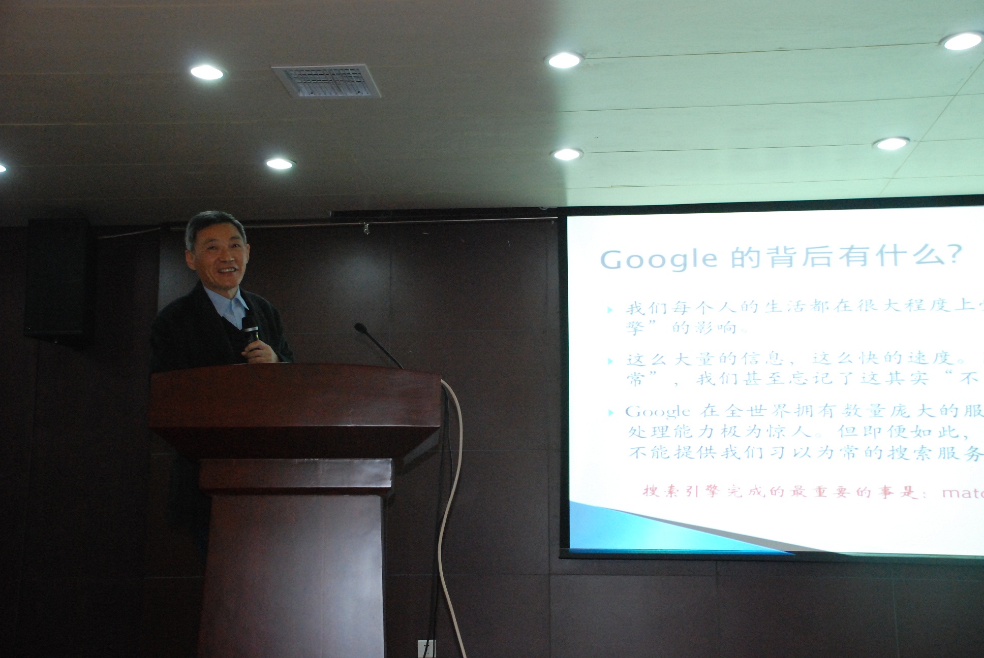 作为伊万卡 计算机研究的领导者,陈道蓄教授对计算机的未来发展方向有着自己独到的见解。在一开始,陈道蓄教授通过提出疑问——“计算机的产生是否是第三次工业革命前夕?”引入主题,并指出互联网是当代计算机发展的契机,因为互联网现在正由有线向无线过渡,逐步实现在任何时候,任何地点都可以使用互联网。接着,陈道蓄教授通过举例,生动描述了互联网的三大优势:1.互联网是一个巨大的无限舞台,因为网络让地球成为地球村;2.互联网存在大数据的商务应用,尤其是电子商务,并指出马云是当代在电子商务界最成功的大师之一;3.通过互联网可以实现智能化,通过智能化可以实现机器学习等功能,为人类发展提供帮助。然后,陈道蓄教授枚举了像乔布斯、比尔盖茨等在计算机方向有突出贡献的商业大亨,也列举了像图灵、冯诺依曼等计算机大师,以生动形象的语言表述了他们在计算机科学历史的一些伟大时刻。最后,陈道蓄教授以google为例,给同学们讲述了搜索引擎的两大关键——Matching(匹配)和Relevant(相关)。