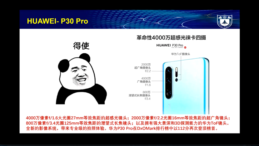 本次讲座的主题是成像技术的发展,首先祝院士以大家熟悉的华为手机镜头的例子引入关于现代光学成像技术的介绍,让大家先直观地感受到了成像技术的发展。