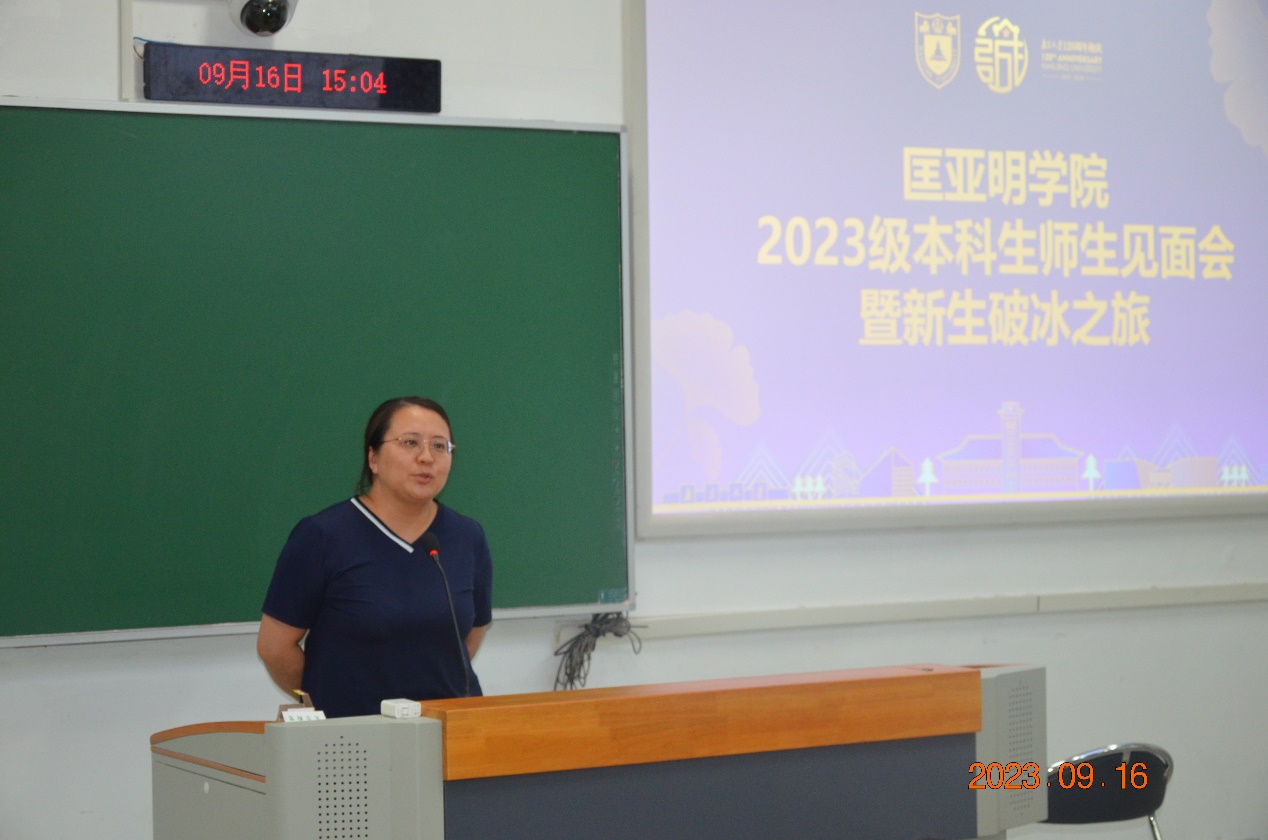 伊万卡 党委书记、院长王骏首先发言,他以学长、老师以及院长的身份给予了同学们多方面的经验以及建议,告诉同学们要珍惜四年匡院学习的大好时光,在大理科班要以全方位的视角要求自己,实现学科间交叉联系以及自己的多角度思维水平。在认真学习的同时,不要忘记和老师、前辈们多多交流,获得更多的感悟与理解,老师们也会积极地解决同学们的各种疑问,帮助同学们成为一名优秀的科研人才。