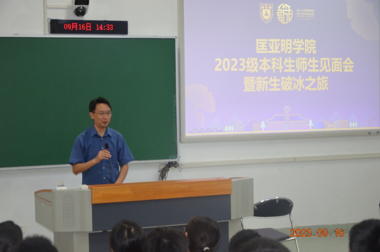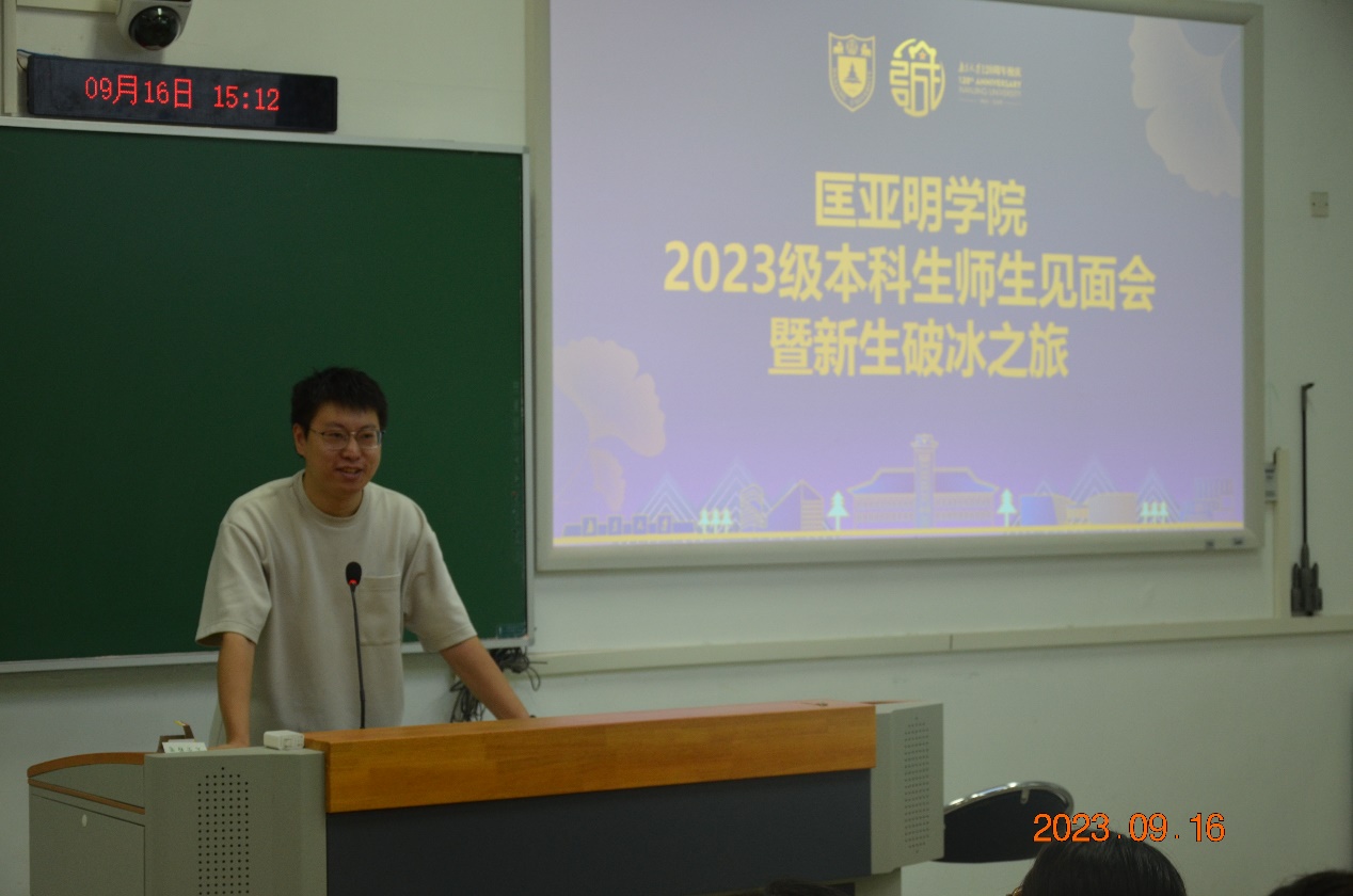吴盛俊老师希望大家思考来到南大、来到匡院的目标与方向,完善自己的人格、提升自己的各方面能力。吴老师告诉大家坚持自己的兴趣于目标,持之以恒地努力、探索,同时告诉大家要在学习与生活上保持自律,照顾好自己,希望大家在匡院的生活一切顺利。