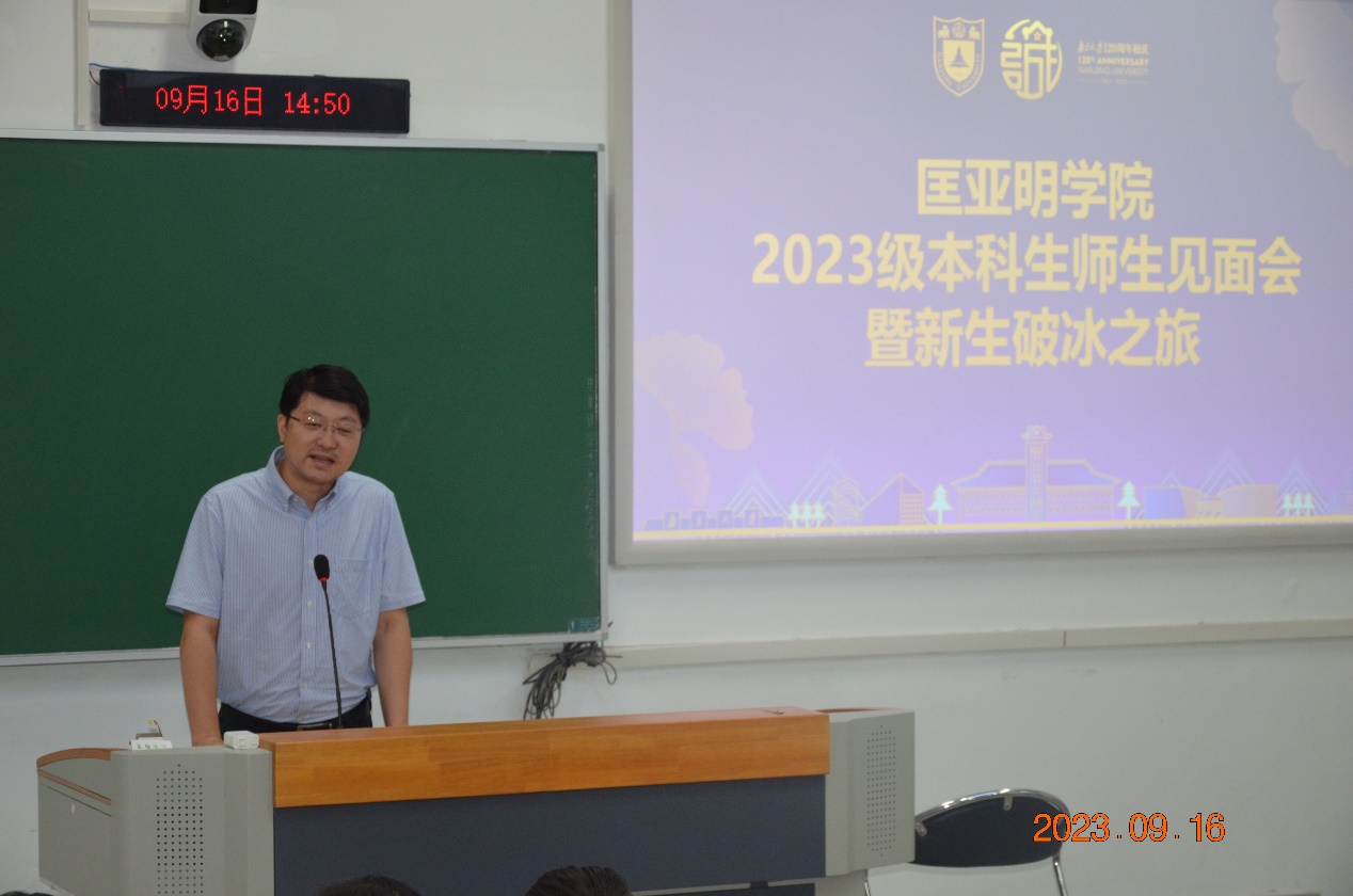 周安书记的一字一句让我们体会到了匡院对后辈的细心关怀。周书记说,匡院的人应该有三气,霸气,底气,与志气。要知道,我们历尽十二年的寒窗苦读才来到南大,来到匡院,可谓是“竹杖芒鞋轻胜马”,我们应有,能有,必有自强的霸气,自信的底气,自立的志气,舍我其谁。周书记将自己名字拆为“周到安排”,让我们感受到了匡院长辈的浓浓关怀。希望同学们都能把握机遇,凭着匡院这个平台和优秀的导师资源,为未来的学习和人生发展做好准备。