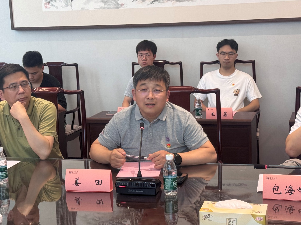 包海峰介绍了能资学院的成立背景与党建特色。他谈到,能资学院作为南大服务国家“双碳”战略的新兴工科学院,依托学校基础学科优势,面向国家重大需求开展学科交叉研究。包海峰分享了三点学习心得:一是将八项规定精神融入日常教学与管理,强化作风建设;二是以党代会精神为指引,推动党建与学科建设、人才培养深度融合;三是抓住苏州校区发展机遇,打造特色党建品牌,提升学院凝聚力与战斗力。他希望两院通过党建联建,促进基础学科与工科的深度交叉,共同服务国家战略。
