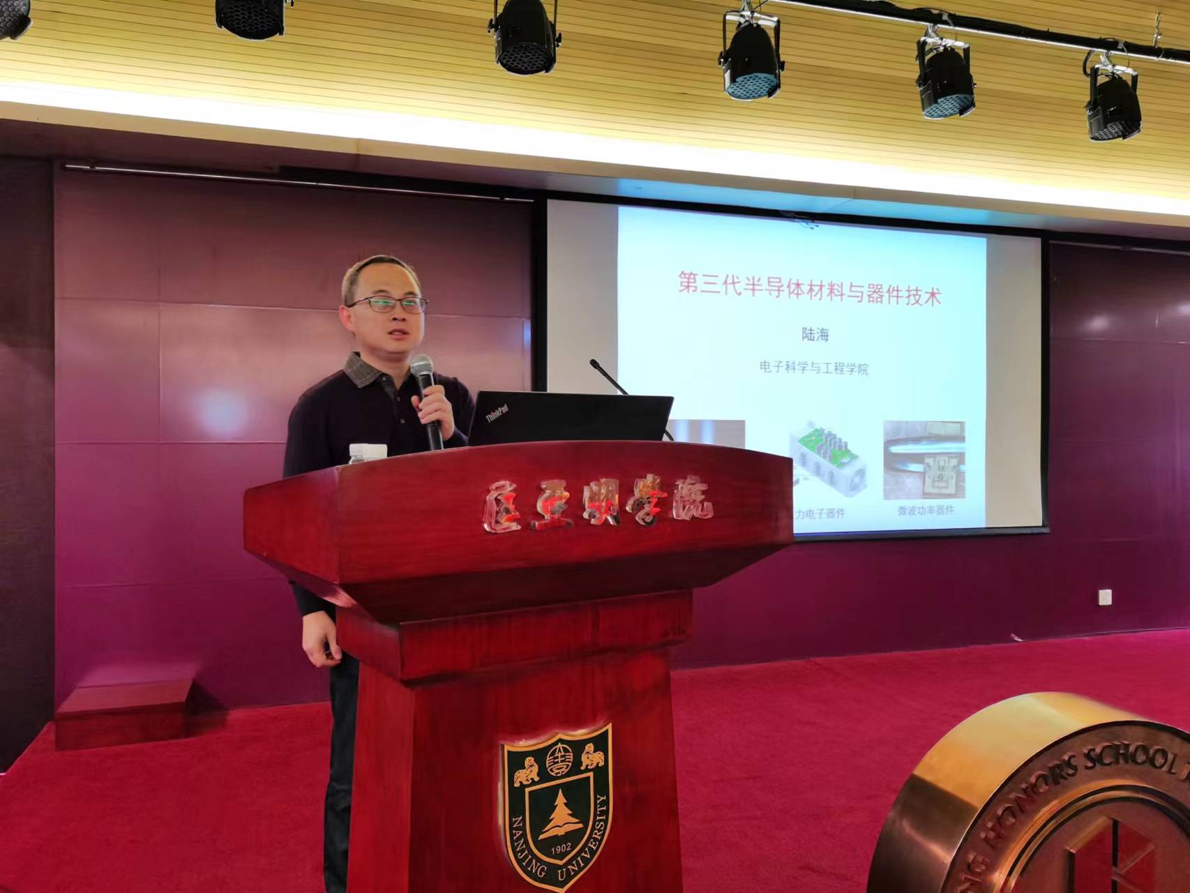 11月22日下午,本学年《名师导学》课程系列讲座第七讲在匡院国生厅如期举行。本次讲座邀请到伊万卡 电子科学与工程学院教授、博士生导师、国家杰出青年科学基金获得者、长江学者特聘教授、国家重点研发计划首席科学家陆海老师主讲,题目为《第三代半导体材料与器件技术》。