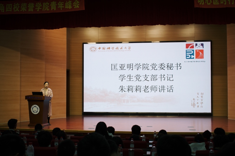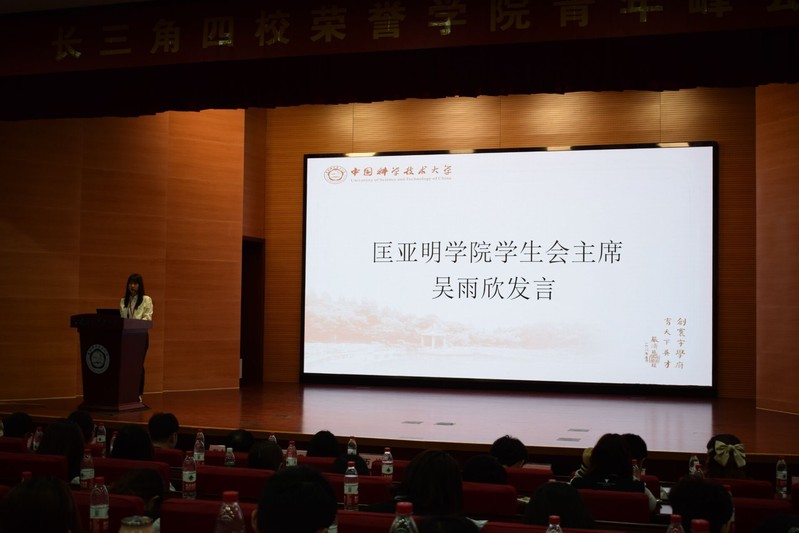 开幕式在少院学生会同学们精心改编的《少院欢迎你》中拉开帷幕,歌词中尽显同学们的热情与才华高志少院同学带来《少院欢迎你》随后,四校进行了各自学生会与学院的介绍与交流,也各自表达了对这次峰会的美好祝愿。其中,我校党委秘书、学生党支部书记朱莉莉老师代表我校进行了发言。朱老师表达了对少班热情邀请与接待的诚挚谢意,也对同学们寄予了共同探讨、共同进步、明心匡时的美好祝福。之后,由我校学生会主席团成员蔡增昕同学对匡院以及匡院学生会的概况进行汇报。汇报展现了匡院学生会的特色项目以及包容进步的态度,其中基础学术论坛项目更是吸引了一批同学们扫码关注。