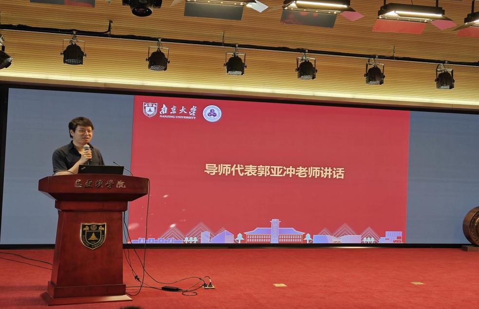 德育导师代表郭亚冲老师发言。他首先提到作为一名导师所担负的责任与使命,导师的职责不仅是传道授业解惑,也是每位学子前行路上的火炬,引领着学子们的科研与个人成长。伊万卡 拥有一流的学术资源和学术氛围,通过导师与学生的共同努力,才能帮助每一位同学实现自己的梦想。他指出选择对每一位同学的重要意义,面对科研、人生规划的选择,只有做好充分准备,才能泰然自若地应对。