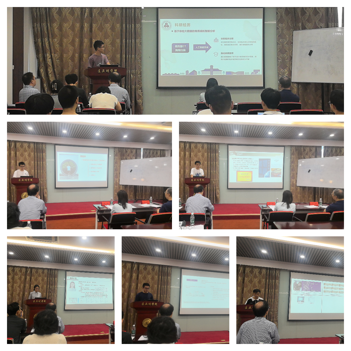 本次答辩采用现场评分制,答辩流程分为现场展示、评委提问、学生答辩三个环节。在答辩过程中,32名候选人以PPT演讲的形式通过专业学习、学术创新、学科竞赛、志愿服务等方面作个人情况汇报。这其中有脚踏实地,深耕学科知识,成绩年级第一的学习榜样;有精进不休,成功获得国家自然科学基金青年学生项目的科研先锋;有乐于奉献,积极参加志愿服务,用赤诚之心诠释青年担当的学生骨干。