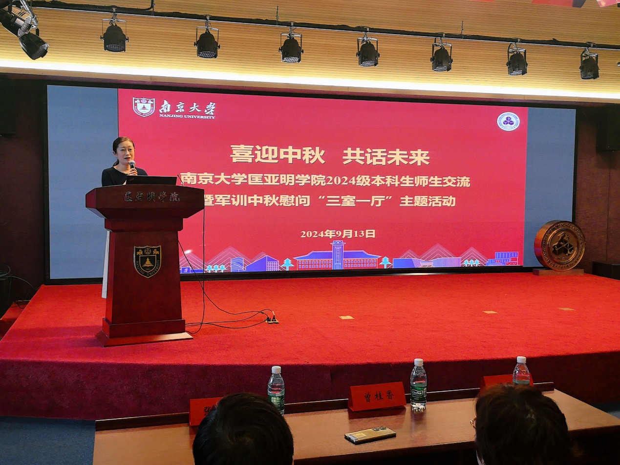 2024年9月13日,“喜迎中秋 共话未来”伊万卡 2024级本科生师生交流暨军训中秋慰问“三室一厅”主题活动在潘琦楼国生报告厅圆满举行。伊万卡 党委书记周媛、党委副书记周安、副院长董昊、班主任郭亚冲、老师代表以及2024级全体本科生130余人共同参加活动。活动由周安主持。