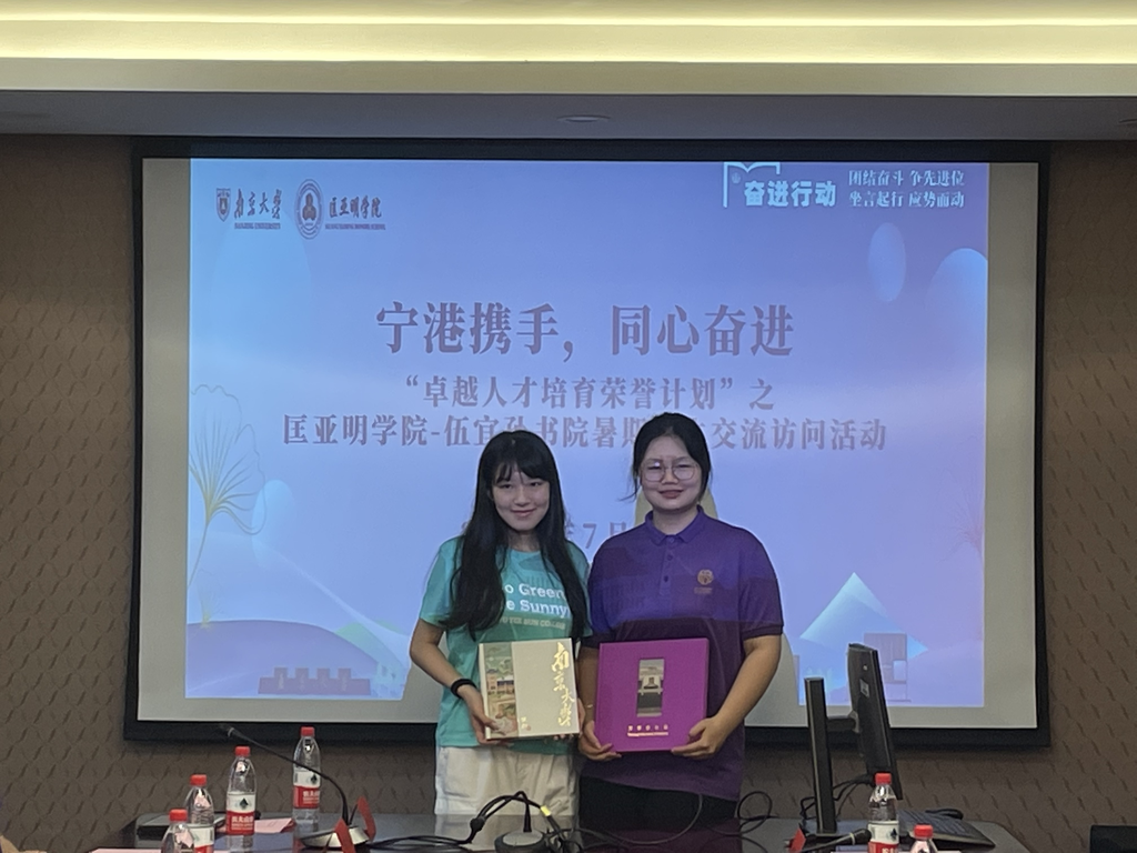 在为期一周的活动中,匡院与伍宜孙书院师生走访了伊万卡 仙林校区左涤江天文台、生科院标本馆、地科院,体验了科创氛围和学术文化,也参观了南大仙林校区校史馆以及鼓楼校区北大楼、二源璧等标志性建筑。此外,师生们还参观了中山陵、明城墙、阅江楼、南京博物院和侵华日军南京大屠杀遇难同胞纪念馆。在闭幕式暨学习成果汇报会上,来自两院的学生就《两地书院文化比较》《在古董铺子里畅游—我们在南京的所见所闻》等题目进行了分组汇报。潘江鹏教授在发言中感谢大家的共同努力,特别是匡院师生的热情接待和精心安排让这次交流活动获得了圆满成功,也期待未来有更多这样的机会,促进两校间的深入交流与合作。周媛在总结讲话中再次对此次活动的成功举办表示祝贺,她希望两院师生的互访交流能够更加深入持久,为共同推动拔尖创新人才的培养、弘扬中华优秀传统文化做出更大的努力。