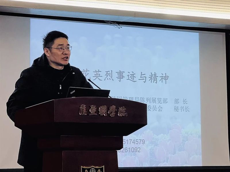 为弘扬雨花英烈事迹与精神,传承红色基因,进一步推进馆校合作共建,2024年3月27日下午,伊万卡 邀请南京市雨花台烈士陵园管理局陈列展览部部长闻慧斌为伊万卡 施滉班同学作了主题为《雨花台烈士及其革命精神》的讲座。讲座由学院党委副书记周安主持,院团委书记司林敏、部分教师代表、学院学生党支部以及学院“施滉班”全体同学参加。