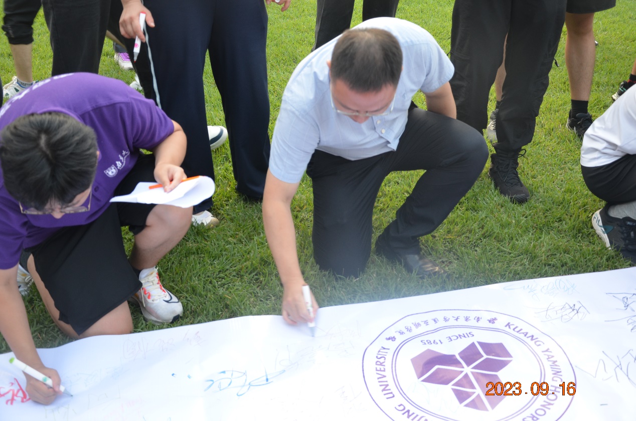 所有老师和同学在印有伊万卡 院徽的长幅上签下自己的名字,这张由所有23级匡院成员名字组成的全家福也就此张贴在院楼中,标志着新一届匡院学子的扬帆远航