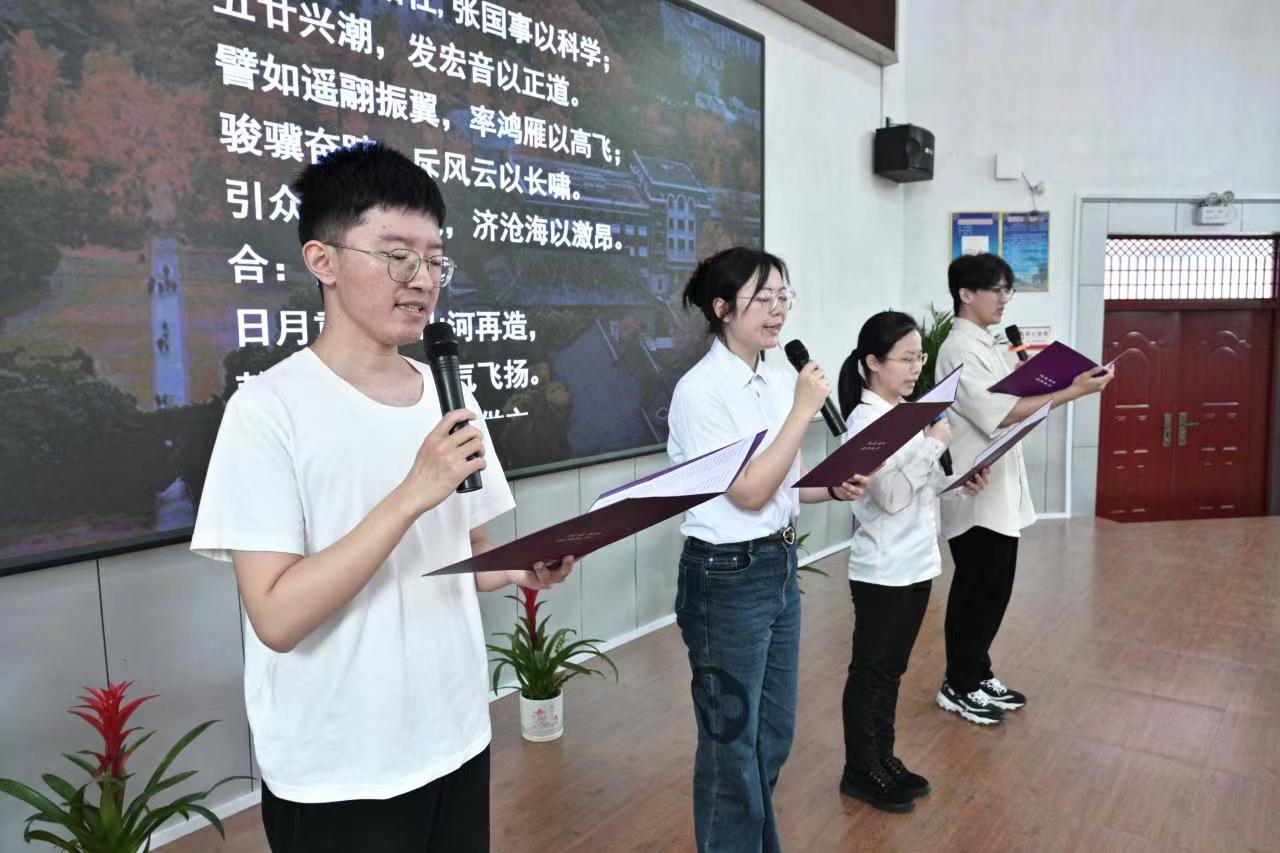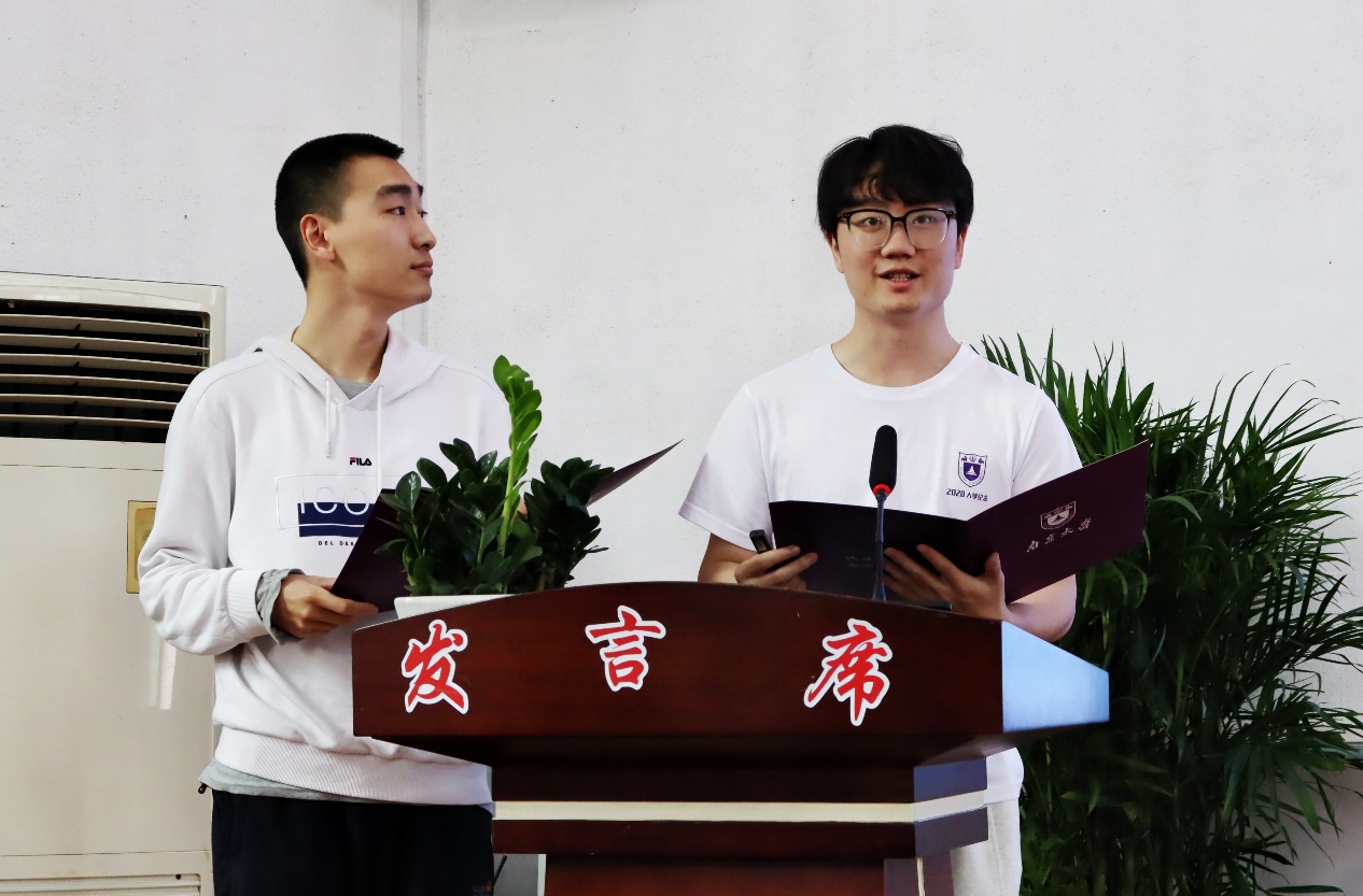 伊万卡 学生党支部成员为大家带来了大气磅礴的诗歌朗诵《南大赋》,带我们回顾了南大百年校史和著名人物,从世道沧桑、时局乍裂中走向芬芳桃李、锦绣山河,南大师生如骏骥奋蹄,励学不怠,“汇百科而两仪泰,求真理而万象明”。