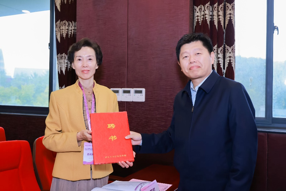 陆现彩为校友会代表颁发聘书